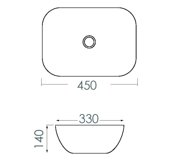 A2 - Rectangle Countertop Basin 450 x 330 x 140