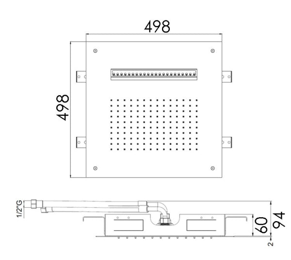 | Description | Requires minimum 3 bar pressure. Comes with mounting frame. Rain function, 12.5 l/m Cascading Rainfall (3 positions – selected & set at installation) 16.9 l/m Requires shower valve with 2 outlets |
