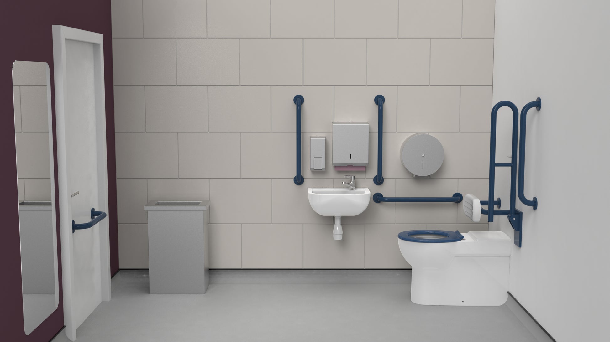 | Description | Premium rimless right handed back to wall Doc M toilet pack, stainless steel, concealed fixings, dark blue (RAL 5011) |